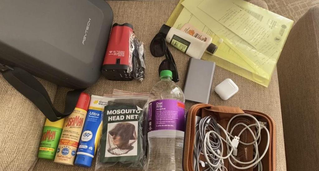 - kalau untuk aku penting aku bawa drone, charger drone untuk mobil, surat izin terbangkan drone dari pemerintah NT, power bank, perkabelan untuk charger, snack selama 6 jam perjalanan, dan headphone.