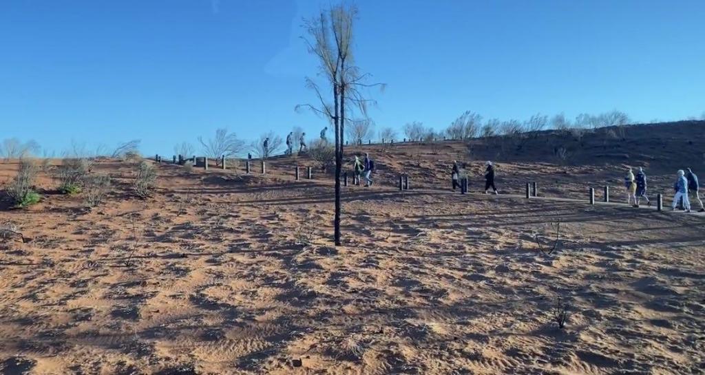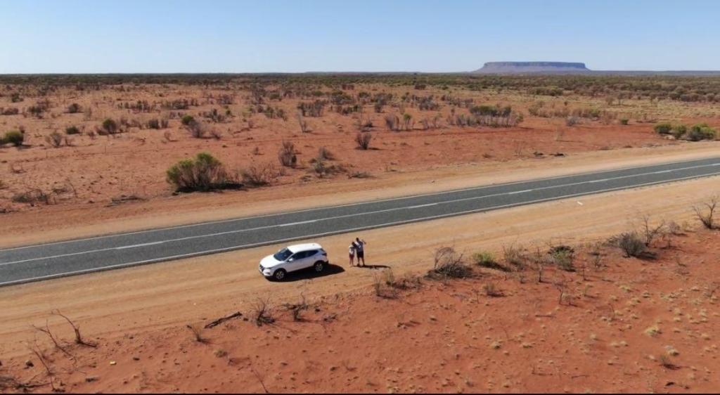 Selama perjalanan yang cukup panjang kurang lebih 3 jam, kita hanya bisa melihat padang pasir merah gersang, tidak terlihat banyak binatang seperti kanguru karena sangat kurang sumber air bahkan onta liar juga jarang terlihat. Kami sempat melihat sekitar 5 onta liar yang ada disekitar salah satu tempat penginapan ‘Curtin Springs’.