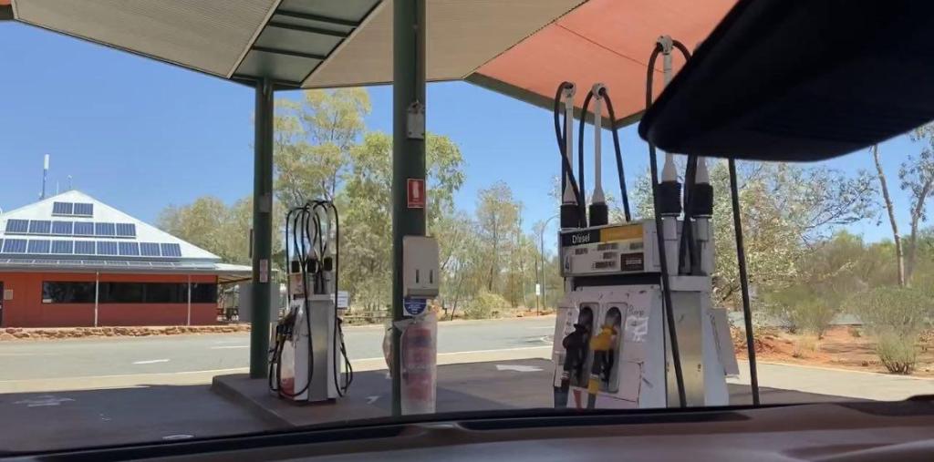 Dalam perjalanan balik, kita isi bensin dulu disekitar penginapan Kings Canyon, tinggal ikuti saja sign di jalannya. Karena lapar juga, kita sekalian isi perut Sandwich telur dan ayam AUD 6/ makanan, sekalian bayar uang bensin di konternya.