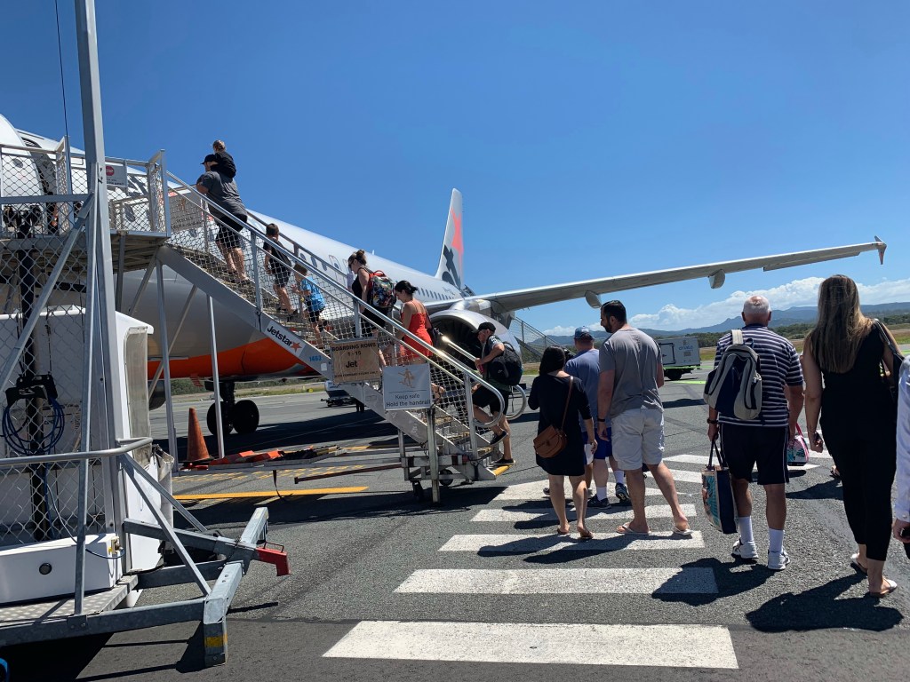 Kita liburan ke Gold Coast pakai pesawat (biasanya pakai Jetstar karena lebih murah) dari Sydney dan tiba di bandara Gold Coast di Coolangatta dengan penerbangan selama kurang lebih 1 jam 20 menit. Untuk harga tiket bisa bervariasi, waktu itu aku dapat tiket sekitar 65 AUD (harga segitu termasuk murah jadinya kita beli, biasanya bisa sampai diatas 90 AUD sekali jalan per orang) sekali jalan dari Sydney ke Gold Coast pakai maskapai Jetstar.