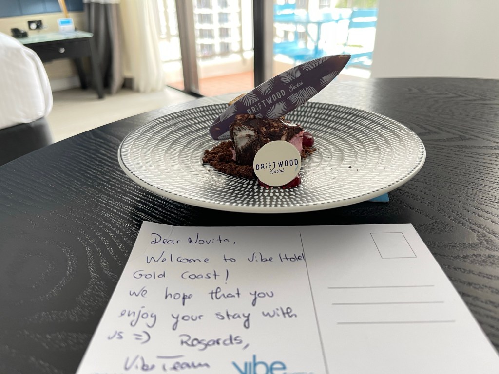 Hotel Vibe ini berada di pinggir sungai Nerang yang mengalir di kota Gold Coast. Berada di jalan besar dalam kota dan dekat dengan Surfers Paradise pusat kota (hanya dengan nyembrang jempatan), gampang banget cari tempat makan dan minimarket bisa jalan kaki. Banyak juga pilihan hotel di sekitar sini. Kalau kalian yang tidak bawa mobil, jangan khawatir, ada stasiun tram Cavill Avenue yang terdekat sekitar 250m. Hotelnya trendi dan bagus dengan kombinasi warna natural dan biru. Kamarnya kita pesan kamar standar dengan harga normal sekitar Aud 200 per malam, karena aku kerja di sister hotel mereka, jadi aku dapat harga pegawai A$70 per malam (lumayan menghemat dan dapat complimentary snack). Kamarnya besar juga, dengan meja makan, teras, dan fasilitas standar lainnya. Paling senang sama kamar dilantai atas dengan teras karena pemandangannya, apalagi kalau dapat yang menghadap sungai atau laut dengan matahari terbit maupun terbenam. Fasilitas hotelnya ada kolam renang (di lantai 1 menghadap sungai, keren), gym, spa, bar dan restoran (di lantai 2), dan tempat laundry di area basement. Cuman memang, parkir sangat terbatas dan susah banget cari parkir gratis walaupun ada karena berada di depan jalan yang sangat ramai bahkan biasa macet pada jam sibuk. Ada parkir di sekitar hotel, namun harganya A$ 30 per hari (mahal coy!).