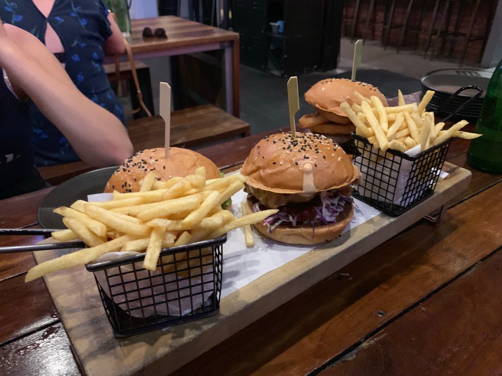 Kali ini kita nongrong di restoran burger untuk makan malam yang berada di area South Bank. Selain burger, resto ini juga menjual hotdog, iga sapi BBQ, salad, dan makanan penutup. Aku cobaiin burger ayam krispi nya dengan isian keju American, salad slaw, chili relish dan chipotle mayo. Burgernya uenak, memang paling suka sama ayam krispi burger, kombinasinya pas, dan rotinya lembut. Staff nya juga ramah dan makanannya datang cepat juga, mungkin sudah tau muka-muka kelaparan.