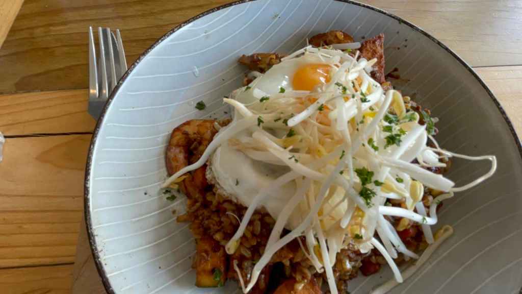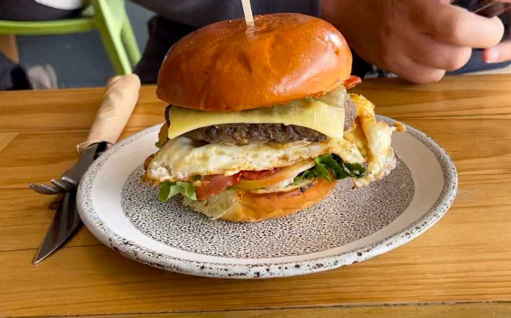 Sampai dipusat kota Devonport, kita langsung cari makan siang saking laparnya dan nemu cafe namanya Nourish cafe. Kita pilih cafe ini karena ada makanan asia dan bule nya, karena suami lagi pengen makan burger dan aku mau makananku makanan asia. Jadi kita sepakat makan disana sambil nunggu waktu jemput mobil juga.