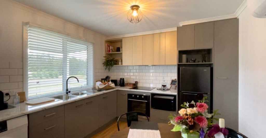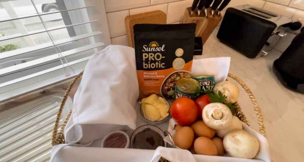Dihari pertama, pemiliknya menyediakan breakfast pack gitu ada homemade roti, telur, bacon, baked beans, parsley, jam, butter, susu, dll. Jadi kita tidak khawatir makan pagi tinggal masak aja sudah tersediakan bahan-bahan untuk makan pagi besoknya. Apapun yang kita butuhkan untuk masak dan makan sudah tersedia lengkap di dapurnya. Pemiliknya juga sweet banget, kita dikasih bunga, coklat dan anggur merah lokal karena kita tamu pertama airbnb mereka. Mereka juga kasih diskon bagi 3 tamu pertama mereka.