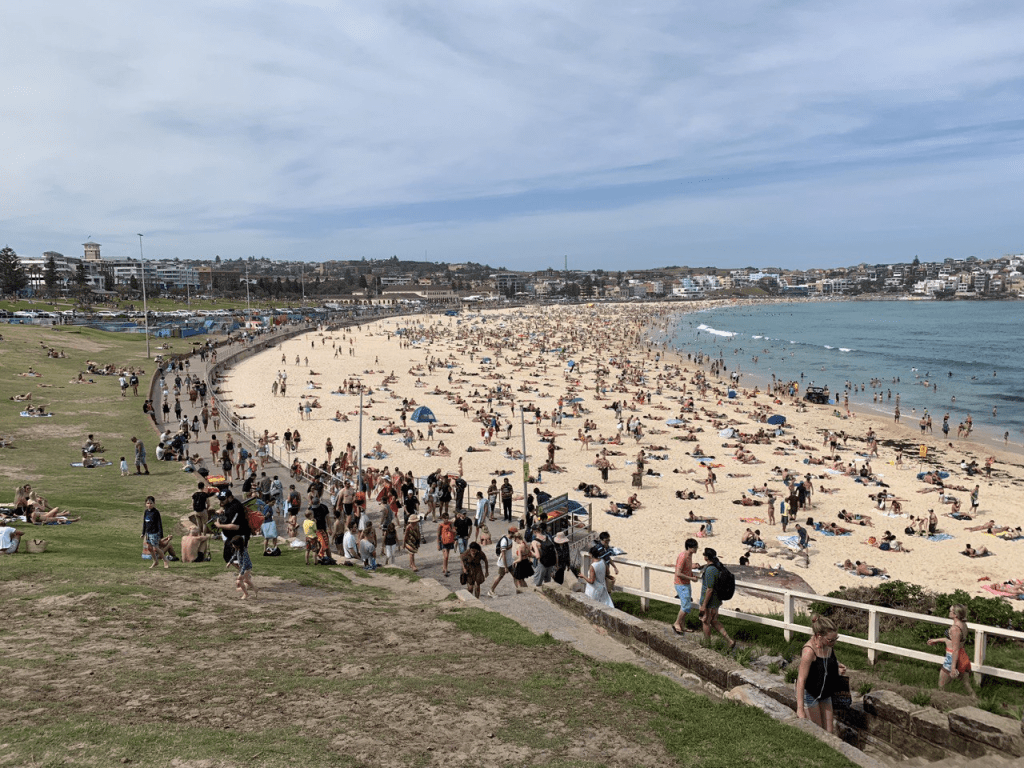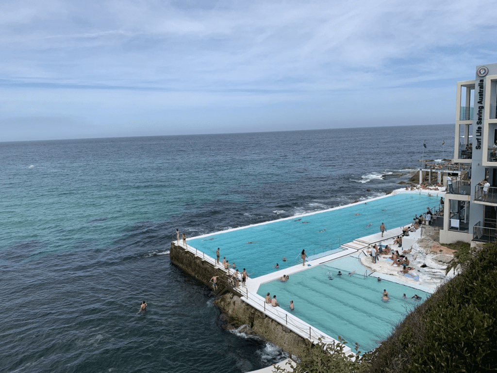 - Bondi Beach. Sydney memiliki lebih dari 100 pantai dan beberapa pantai yang terkenal adalah Bondi, Manly, Coogee, dan Bronte. Pantai Bondi ini merupakan yang paling ramai dan terkenal dikalangan turis. Pantai berpasir putih ini banyak dikunjungi oleh para perselancar juga karena ombaknya. Selain itu ada juga kolam renang Iceberg di lautan yang ikonik dan instragramable. Kalau tidak salah biaya berenang di Iceberg ini sebesar AUD 7 per orang. Setelah berenang dan kalian kelaparan jangan khawatir ada tempat banyak dengan berbagai pilihan café dan restoran terkenal juga disini. Tempat berbelanja pun ada. Kalau kalian senang jalan kaki sambal melihat pemandangan laut dan tebing yang indah terdapat namanya ‘coastal walk’, jalur pejalan kaki dari pantai Bondi ke pantai Coogee. Jalur yang lainnya dari Bondi ke Bronte sekitar 4.4km jauhnya. Selain pantai Bondi terdapat juga pantai Manly kalau mau yang tidak terlalu banyak orang seperti Bondi. Di manly juga terdapat jalur jalan kaki yang tidak kalah keren yaitu dari Manly ke spit bridge.