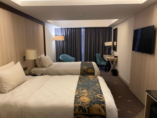 Kita booking kamar yang paling murah (deluxe twin) dengan dua bed untuk harga 670k Rupiah melalui aplikasi Agoda. Harga ini juga sudah termasuk sarapan pagi untuk dua orang.