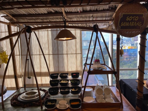 Keesokan harinya, kita ke lantai 6 untuk makan pagi. Untung banget kita pergi makan agak pagian sekitar jam 7 pagi. Soalnya pas kita mau keluar sekitar jam 8, itu udah rame banget. Jadi kayak harus ngantri walaupun gk lama untuk ambil makanan atau minuman maupun untuk tempat duduk. Jadi pas rame, kita udah selesai dan sekalian gentian sama yang lain. Makanannya lumayan enak dan pilihannya juga lumayan bervariasi. Aku nyobain soto Semarangnya dan bubur ayam (menu yang hamper selalu ada di hotel di Jawa).