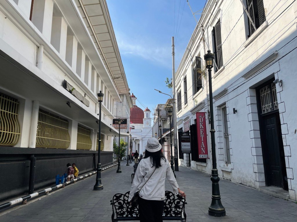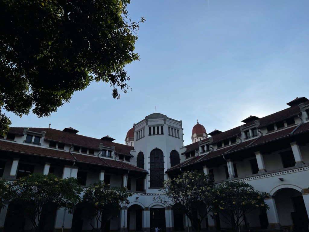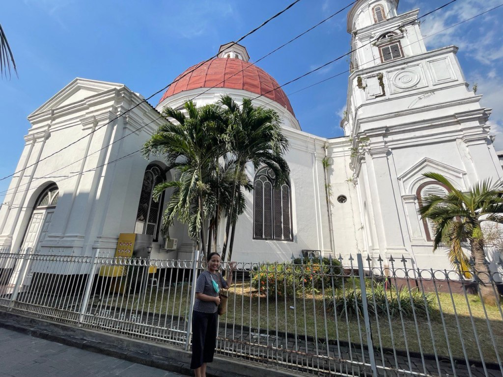 Tidak jauh dari Merba, kita sampai di salah satu landmark kota lama yaitu Gereja Blenduk Semarang. Gereja ini berada di bagian tengah kawasan kota lama ini. Gedung Gereja ini dibangun pada tahun 1753 oleh bangsa Portugis dengan berbentuk rumah panggung Jawa termasuk bentuk atapnya. Kemudian mengalami perombakan ketika dibangun ulang oleh arsitektur Eropa pada zaman kolonial Belanda pada tahun 1894 dengan bentuk persegi delapan beraturan, dan ciri khas berkubah besar berwarna merah tua. Oleh karena itu masyarakat setempat menyebutnya Gereja Blenduk, arti nya dalam Bahasa Jawa ‘menonjol’ atau ‘menggelembung’. Gedung ini masih aktif digunakan sebagai tempat peribadatan yaitu Gereja GPIB Immanuel dan merupakan gereja protestan tertua di Jawa Tengah. Kalau kalian ingin melihat bagian dalam gereja, kalian diizinkan masuk kalau tidak ada acara ibadah. Dibuka setiap hari dari jam 8 pagi sampai jam 3 sore dengan tiket masuk 10k per orang.