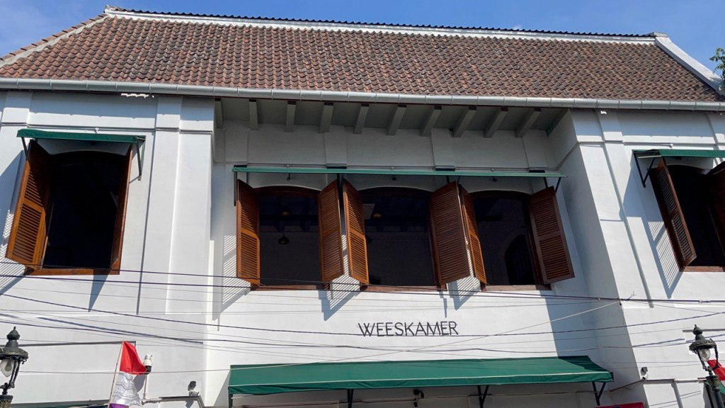 Bangunan pertama yang kita temui adalah ‘Weeskamer’. Gedung bersejarah ini dibangun pada tahun 1889 oleh kolonial Belanda sebagai Balai Harta Peninggalan (BHP) dimana saat itu perkumpulan dagang yang didirikan Belanda semakin meluas dan akhirnya membutuhkan pengurusan harta kekayaan yang mereka akan tinggalkan untuk ahli waris mereka. Bangunan ini ada 3 lantai dan telah mengalami pemugaran pada tahun 2018 jadi memang bangunan ini terlihat dalam kondisi terawat. Sebagai bagian dari sejarah, Gedung ini terpilih menjadi tempat ‘G20 Fair’ yang dilaksanakan pada tanggal 21-22 April 2022. Salah satu kegiatannya adalah seminar yang bertemakan ‘Langkah Maju Energi Terbarukan Indonesia’.