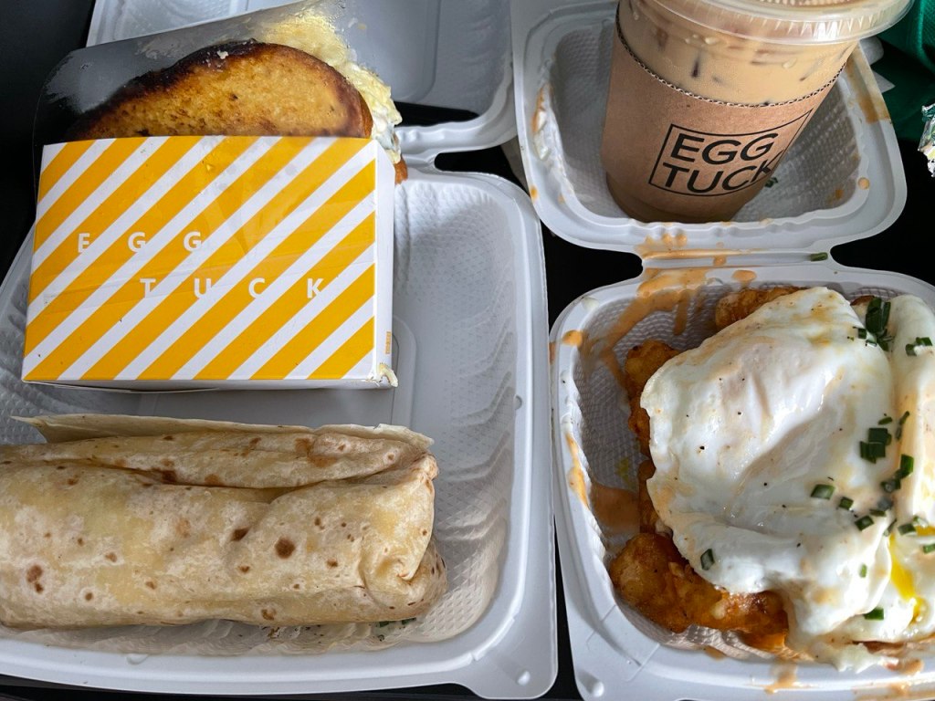 Sarapan kita pesan online melalui aplikasi Doordash, kita beli sandwich telur alpukat (U$ 10.99), hash brown dengan saus sriracha aioli dan telur setengah matang diatasnya (U$ 5.5), breakfast burrito isian scrambled egg, hash brown, saus sriracha aioli, dll (U$ 7.99), iced Latte (U$ 5.5) dan harganya yang tercantum di menu belum termasuk pajak (9.5%), service fee pesan online (5%), dan tip (10%). Jadi pastikan kalau kita makan diluar, kita menyadari kalau harga yang tercantum belum termasuk pajak dan tip kalau makan didalam atau duduk (tip bervariasi dari 15-20%). Tips seperti suatu kewajiban kalau kita makan di restoran atau cafe dine-in di Amerika, karena katanya standar gaji pegawainya yang kecil (dibandingkan dengan biaya hidup) jadi mereka hidup dari tips yang diberikan oleh pelanggan. Kecuali restoran cepat saji, tips adalah pilihan kalau kita mau saja. Sandwich nya enak dengan kombinasi filling dan sausnya, roti brioch nya lembut dan harum (roti dibuat di store nya fresh). Begitu juga dengan hashbrown, walaupun sudah tidak garing lagi pas sampai dikita namun rasanya enak mungkin karena sausnya yang tidak dipisah juga.