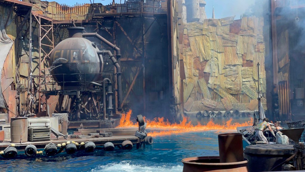Atraksi selanjutnya kita nonton pertunjukan Water World pada jam 12 siang dengan durasi 20 menit, namun pilihan waktunya yang terbatas dalam sehari. Walaupun agak nunggu karena kita ngantri diawal-awal, worth it supaya bisa lebih leluasa milih kursi yang kita mau, kalau kalian tidak mau basah-basahan jangan duduk di area warna hijau. Area ini memang dikhususkan bagi mereka yang mau mandi gratis (ehehe, terlihat fun juga koq), ini memang benar-benar basah woy.. Di pertunjukan ini, banyak banget adegan aksinya yang diperankan oleh stuntmen and women profesional yang berpengalaman dan tampil di beberapa film Hollywood. Pokoknya salah satu rekomendasiku.