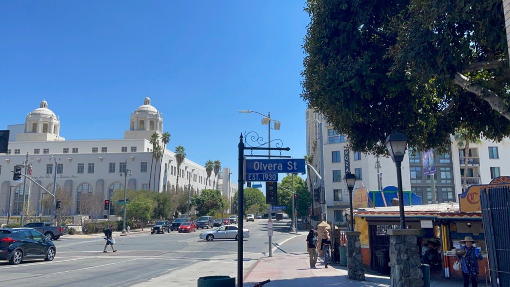 Dari stasiun kita langsung jalan menuju salah satu jalan disini namanya Olvera. Area ini merupakan yang tertua dan bersejarah di LA, yang sudah ada sejak 1930an. Disini terdapat pasar Mexico yang menjual berbagai barang, makanan, toko cenderamata, dan sebagainya. Tidak terlalu besar namun pasarnya agak padat. Selain itu ada monumen yang terkenal sebagai hari lahirnya Los Angeles. Interesting!