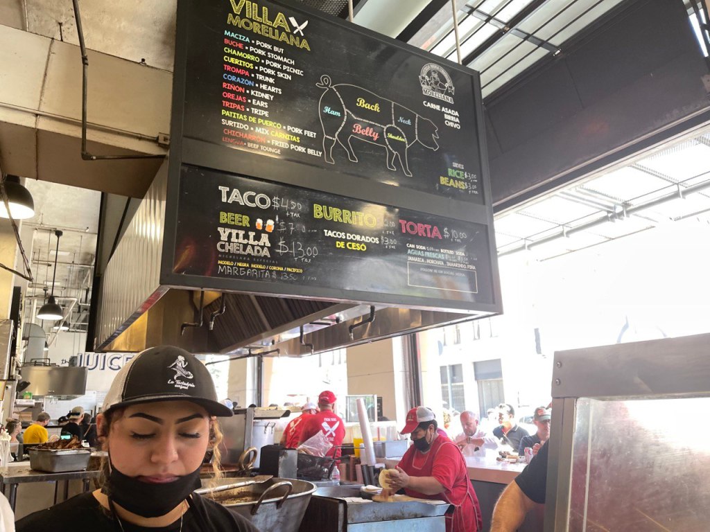 Pasar ini merupakan salah satu landmark kota LA sejak tahun 1917. Disini banyak banget stall dengan berbagai variasi makanan dan minuman dari berbagai negara seperti Mexican, Italian, Chinese, Thai, Philippines, dll. Kita datang disini di hari minggu siang, banyak banget orang. Makan siang, kita makan torta, makanan Mexico yang merupakan sandwich gitu yang isiannya daging babi campur dan saus pedas yang bisa kita ambil sendiri (harga U$ 11/ Rp. 160k). Porsinya besar, cukup untuk makan berdua supaya lebih romantis, iyah gk..(padahal mau hemat aja nih woy).