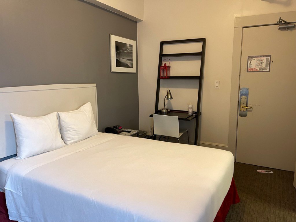 Bangunannya ada lift untuk ke kamar namun agak sempit dan hanya satu jadi lebih baik akses tangga kalau mau cepat. Kamarnya sederhana dan tidak terlalu besar namun memiliki semua yang kita butuhkan. Kasurnya agak keras jadi agak kurang nyaman. Tidak ada alat buat kopi di kamar namun di sebelah resepsionis ada ruangan untuk air panas dan teh/ kopi. Selain itu tidak ada AC, namun tidak terlalu masalah karena menurut aku, udara di SF lumayan dingin. Kalaupun kalian kepanasa, bisa buka jendela namun agak bising suara dari luar. Staff nya sangat ramah dan mengizinkan kita check-in dan titip koper.