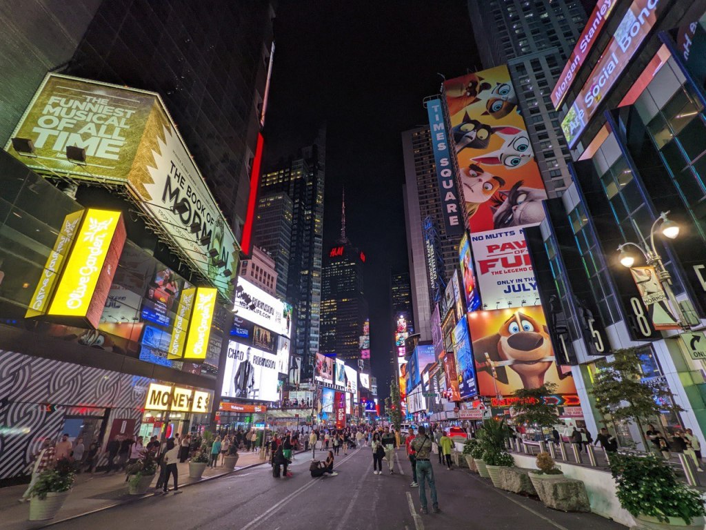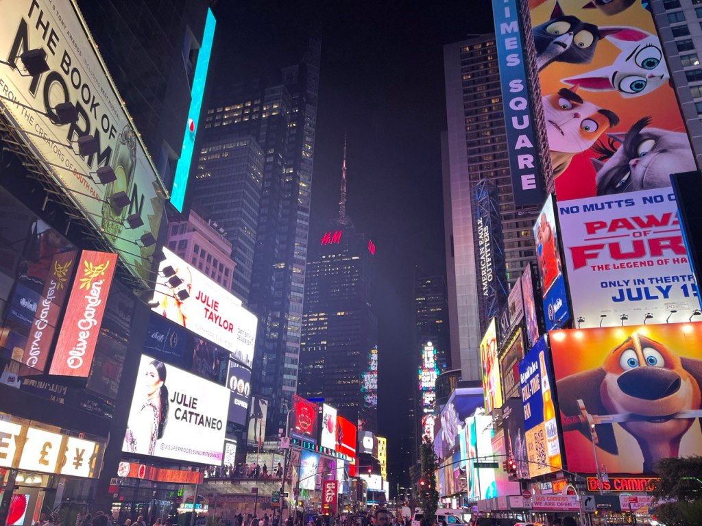 Spot pertama kita ke Times Square, persimpangan jalan utama di Manhattan yang mempertemukan jalan Broadway dan 7th Avenue. Area ini sangat populer apalagi di waktu malam yang penuh dengan lampu berwarna warni dari layar advertising LED yang sangat besar dimana-mana. Ditambah lagi di sepanjang jalan Broadway dekat area ini, dipenuhi dengan teater yang menunjukan pentas drama musikal yang menang dalam penghargaan tahunan. Disini juga biasa ada event gitu, pertunjukan jalanan, banyak turis maupun lokal yang menghabiskan waktu disini dan banyak juga yang mengenakan kostum (kalau kalian mau foto dengan mereka pastikan kalian harus menanyakan harganya didepan/ in advance. Karena mereka dikenal sebagai scam di kalangan turis yang tau (bahkan yang punya pengalaman buruk), tidak semua mereka nice, ada juga katanya yang minta tips yang aggresive (just be careful). Yang paling ramai disini tuh pas pergantian tahun / malam tahun baru.