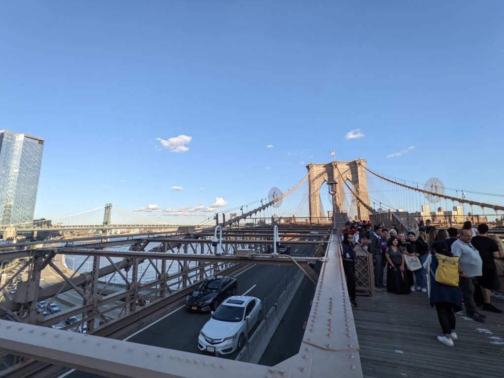 Akhirnya kesampaian juga ke salah satu jembatan suspensi tertua di Amerika dan yang sering wara-wiri di insta reel-ku. Kita ke jembatan ini sore hari, sungguh luar biasa full with human. Memang pernah baca kalau jembatan ini tuh rame banget, kalau mau agak sepi datang pagi-pagi banget. Selain itu, banyak juga orang yang berjualan cendramata maupun minuman dingin disini. Jembatan ini menghubungkan daerah Manhattan dan Brooklyn dengan melintasi Sungai East. Kita hanya numpang foto saja disini sebentar, soalnya jembatannya cukup panjang sekitar 2km dan banyak orang jadi agak susah benar-benar untuk menikmati pemandangan (ehehe).