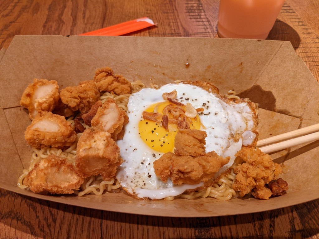 Seharian jalan, perut sudah mulai berbunyi. Sudah lama tidak makan makanan Indonesia, lagi pengen yang micin2, iseng buka hp cari restoran atau cafe Indonesia, eh nemu Warkop NYC. Baru kali ini nemu warung Indonesia jual Indomie dengan berbagai toping tersedia. Kita juga beruntung, karena hari tersebut mereka jual ‘nasi goreng’ sebagai specials (hanya hari tertentu setiap minggu menjual specials yang menunya bervariasi). Kita pesan Bakwan Jagung, Mie goreng pakai telur mata sapi & topping ayam popcorn, nasi goreng special, dan es teh manis, totalnya sekitar 600k untuk berdua sudah termasuk tips dan pajak (Indomie termahal yang pernah dibeli maklum eating out di NYC, paling tidak sudah memuaskan rasa kangen:)). Makanannya enak (nasgor bisa menyesuaikan tingkat kepedesannya), Pelayanannya ramah dan cepat, untungnya cuman kita saja yang makan setelat itu (eheh). Tempat ini buka setiap hari dari jam 11.30 siang sampai 10 malam.