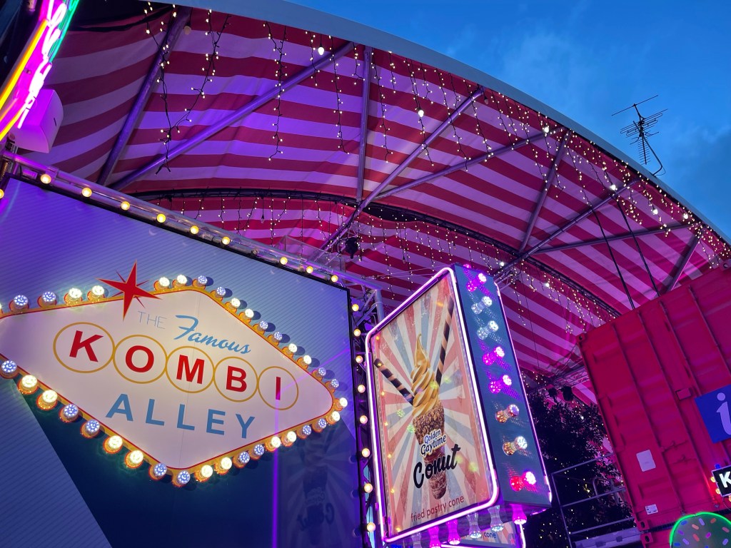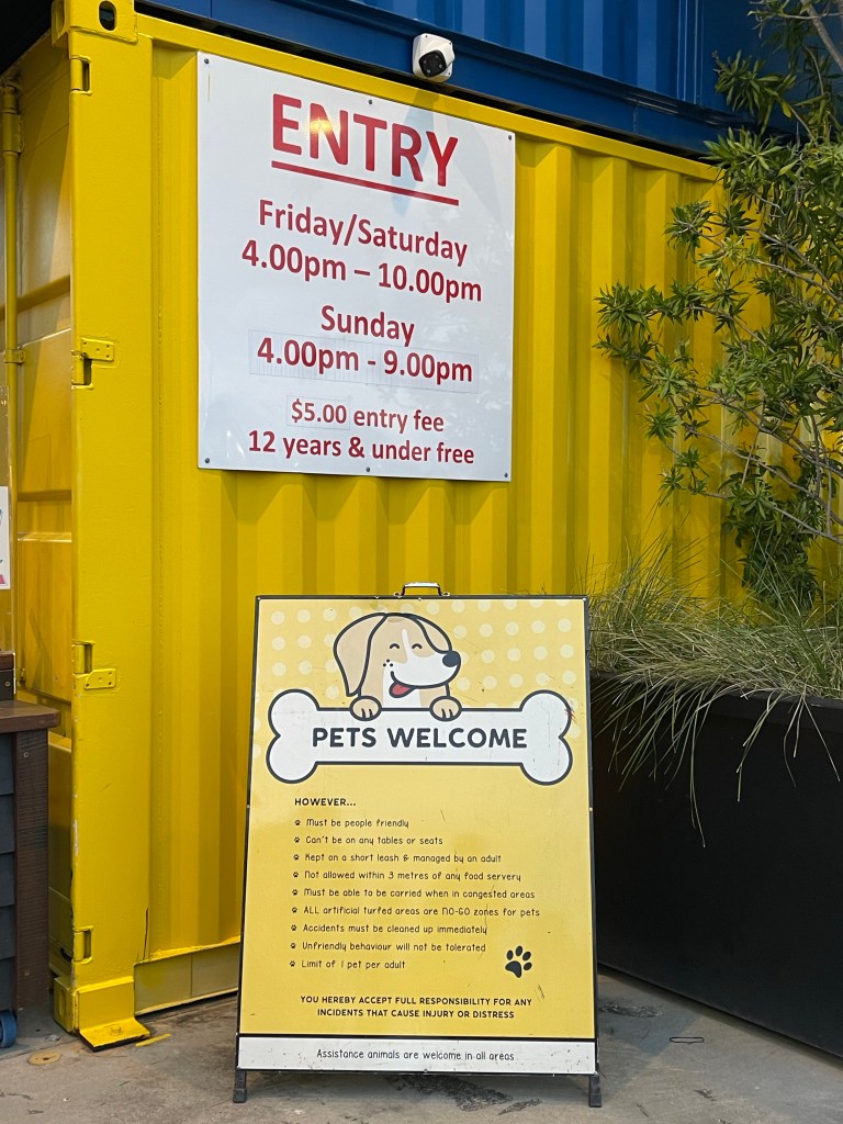 Disini kita mau cari makan malam. Tempatnya keren dengan konsep shipping containers gitu dengan lampu-lampu neon seperti pasar malam yang jual makanan, minuman, live music, dan berbagai jenis hiburan malam lainnya. Disamping itu, kita bisa bawa hewan peliharaan kita, banyak banget yang bawa anjingnya malam itu. Tambah malam tambah ramai tempatnya. Untuk masuk ada uang masuknya AUD 5 per orang dewasa dan anak-anak usia dibawah 12 tahun gratis. Namun hanya buka di akhir pekan saja setiap hari jumat dan sabtu jam 4-10 malam dan hari minggu tutupnya lebih awal jam 9 malam.