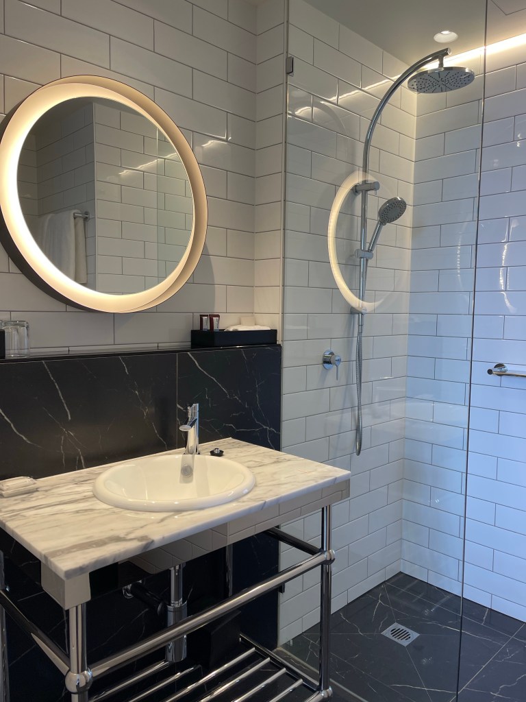 Jalan menuju hotel ini dari Central Station banyak tanjakannya jadi agak capek. Setelah sampai hotel, kita langsung check in. Proses check in nya cepat, staff resepsionisnya ramah dan profesional, dan kita juga harus menunjukan sertifikat vaksin. Untuk kamarnya memang agak kecil dan kasurnya agak keras, tetapi kamarnya bersih, modern, minimalis futuristik, dan punya basic amenities yang aku butuhkan. Fasilitas dikamar yang paling aku suka itu karena ada chromecast nya jadi bisa connect ke hp untuk nonton netflix.