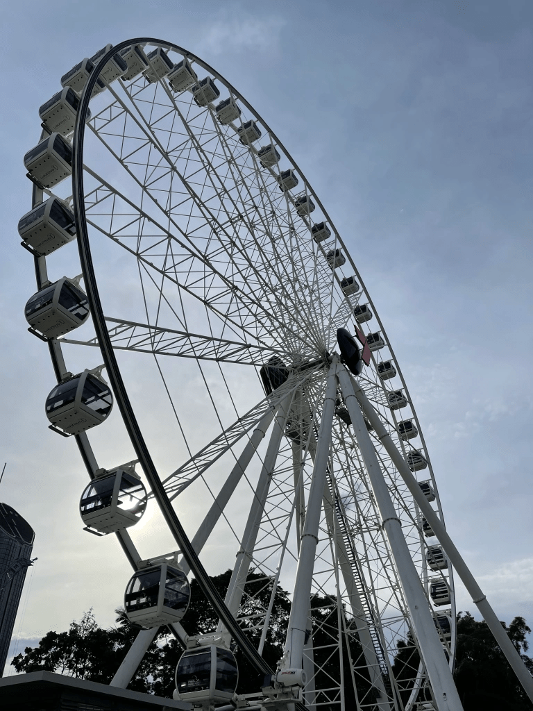 Berjalan tidak jauh dari tulisan ‘Brisbane’, kita sampai dibawah gondola setinggi 60 meter. Salah satu alternatif untuk melihat pemandangan kota juga dengan menaiki wahana ini yang beroperasi di siang dan malam hari. Harga untuk regular dewasa adalah AUD 19.95 dan terdapat juga harga yang berbeda untuk keluarga, anak-anak dan students. Lebih lengkapnya kalian bisa cek di website resmi mereka disini.