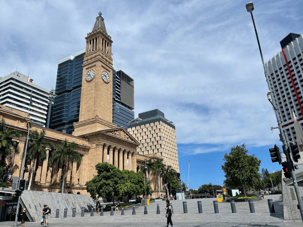 Perjalanan ke central station, kita melewati beberapa bangunan bersejarah seperti Brisbane city hall (balai kota), Albert st uniting church, dan sebagainya. Balai kota Brisbane merupakan tempat kedudukan dewan kota yang letaknya itu hanya bersebelahan dengan King George Square dan berada tepat di jantung kota. Tempat historis ini dibangun antara tahun 1920 dan 1930 dengan menara jam setinggi 87.5 meter yang kalian bisa naiki dengan lift yang bersejarah yang telah dipugar. Kalau kalian tertarik untuk mengenal lebih jauh tentang sejarah kota Brisbane, kalian bisa ikut tur gratisnya pada jam-jam tertentu.