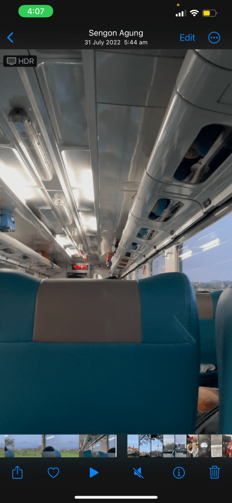 Dari Surabaya, kita naik kereta selama dua jam untuk ke Malang. Enaknya jalan-jalan antar kota dan provinsi di Pulau Jawa tuh karena terhubung dengan jalur kereta yang sudah sangat baik. Pastinya sangat terjangkau apalagi dengan pilihan kelas yang tersedia kalau dibandingkan dengan pesawat. Kereta nya juga ber AC, tempat duduknya nyaman apalagi kelas ekonomi premium, eksekutif, dan kelas diatasnya. Ada juga colokan listriknya, cantolan tas/jaket, tempat resting kaki, dan keretanya juga bersih. Kalau kapar, tersedia makanan juga yang dijual didalam kereta. Kita ambil tiket kelas eksekutif jam 4 pagi dengan harga 30k. Sangat kaget harga nya yang ramah di kantong. Dalam perjalanan mendekati Malang, kita juga disuguhkan dengan pemandangan persawahan hijau yang luas dengan latar belakang gunung. Beautiful…