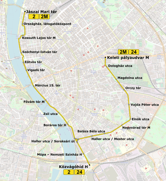 Katanya ada tiga jalur tram yang memiliki panorama kota yang indah, namun tram jalur nomor 2 (Jaszai Mari ter – Kozvagohid) merupakan tram yang paling populer, bahkan beberapa kali dinominasikan sebagai salah satu panorama tram paling indah di dunia. Tram ini berjalan di tepi sungai Danube dan dari sini kita bisa melihat berbagai bangunan bersejarah yang ikonik yaitu Gedung Parlemen, Jembatan Chain, Jembatan Margaret, Kastil Buda, Fisherman Bastian, dan Great Market Hall. Harga nya juga terbilang murah yaitu HUF 350 (Rp. 14ribu) untuk tiket sekali jalan.