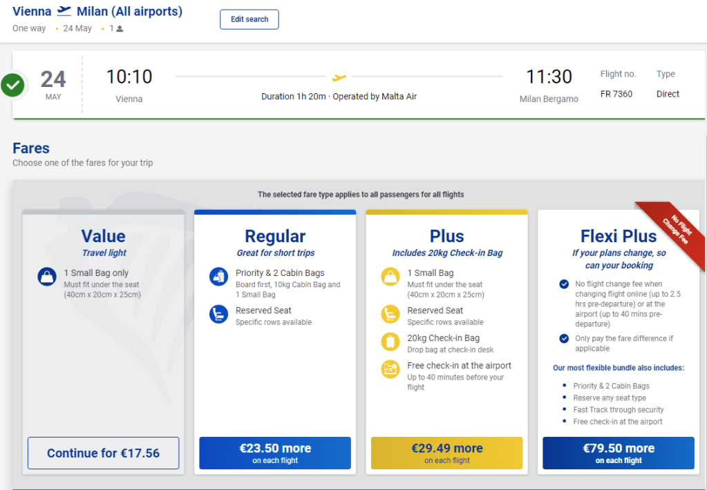 Pesawat budget di Eropa nih agak beda dengan yang sering aku gunakan seperti di negara Asia maupun Australia, dimana basic barang bawaan kita hanya tas ransel kecil dengan ukuran tertentu (bisa muat ditaro dibawah kursi). Kalau kita bawa tas kabin (carry-on) yang biasa ditempatkan di locker di atas kepala, kita harus tambah bayar lagi which is lumayan juga biasa nambah sekitar 350k Rupiah (tergatung maskapai, rute, dan lama perjalanan) untuk satu tas kabin ukuran tertentu dan maksimal 10kg. Selain itu, maskapai budget ini mengenakan biaya untuk setiap jasa yang mereka bisa tawarkan, seperti tambahan biaya untuk carry-on bag, online check-in, reservasi kursi jauh lebih awal, prioritas boarding, jalur cepat security check, dan sebagainya. Bahkan ada maskapai yang mengenakan biaya tambahan kalau kita check-in di konter bandara loh (sadis yah). Jadi kalau mau gratis, kita harus check-in online sesuai dengan waktu yang ditentukan dari maskapai, yang biasanya sekitar kurang dari 48 jam sebelum berangkat.