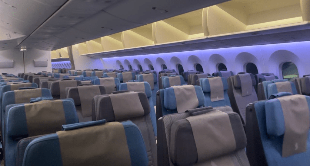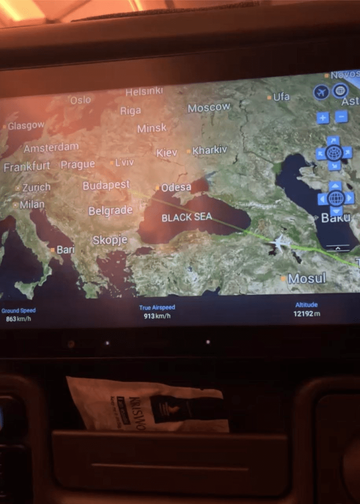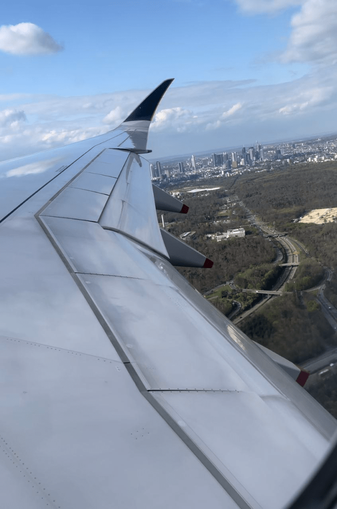 Penerbangan dari Singapura ke Frankfurt SQ 326, kita naik pesawat besar A350-900, dengan konfigurasi tempat duduk 3-3-3. Dengan SQ, kita bisa ganti kursi gratis 48 jam sebelum keberangkatan kita. Jadi kita coba pilih kursi yang agak depan, dekat pintu keluar, dekat toilet, dan masih kosong untuk ketiga tempat duduknya. Kita ambil kursi nomor 43K (samping jendela) dan 43H (isle). Kita tidak duduk bersebelahan, dengan harapan tidak ada orang yang akan ambil kursi kita ditengah. Untungnya, sampai pesawat take off, tidak ada yang duduk di kursi tengah (pro tip). Jadi kita punya space yang lebih luas dan bahkan bisa tiduran dengan lebih nyaman. Namun kita tidak selalu dapat kursi tengah kosong kalau pesawat nya full yah. Pure hanya berdasarkan keberuntungan saja saat itu ehehe. Anw, kekurangan kursi 43K ini adalah pemandangan jendela kita terhalang sayap pesawat yang super lebar. Kalian juga bisa pertimbangkan hal ini yah.