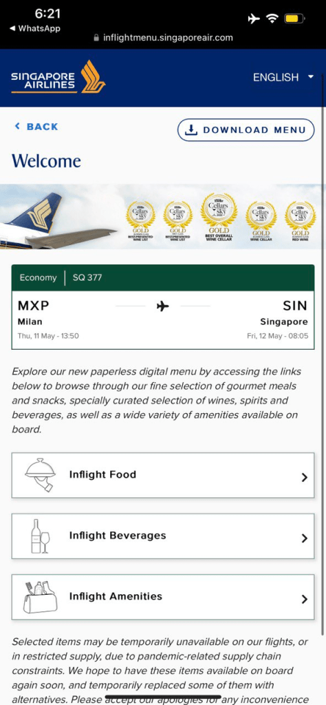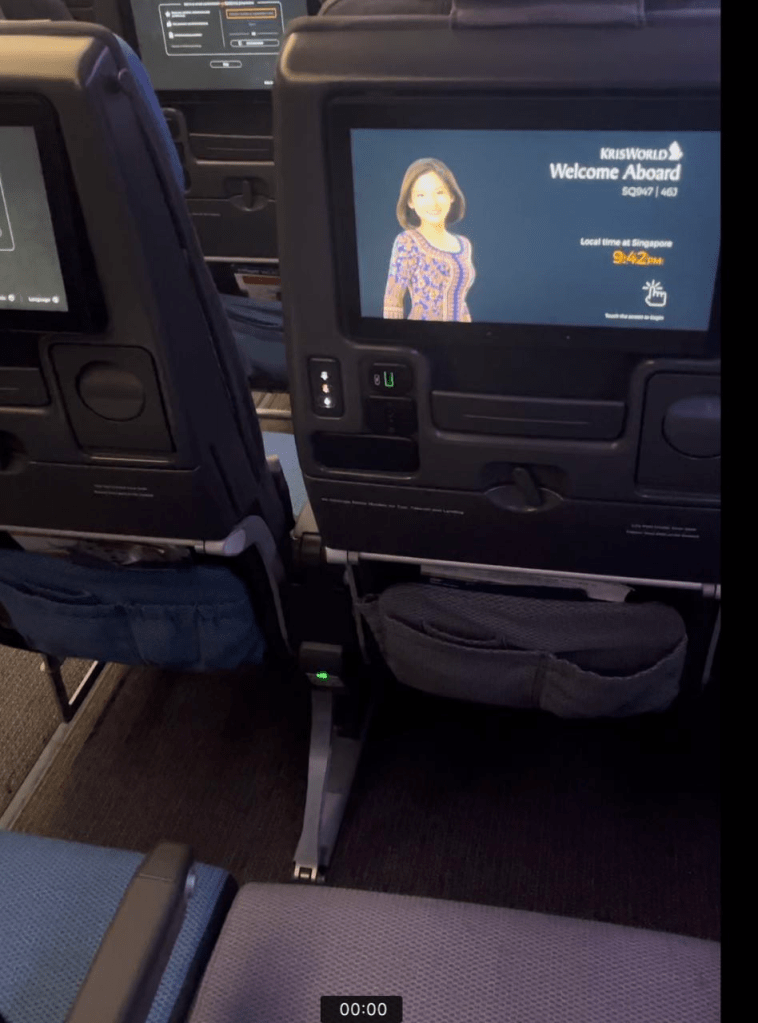 Jarak kursinya lega banget, ada colokan listrik dan usb nya juga, poketnya banyak, tempat holding cup/ gelas, kantong kecil dibawah layar, tray lipat dua yang ada kaca kecil nya juga, tempat cantolan (aku pake untuk cantolan jaket) dan layar hiburan yang touch screen. Layar hiburan nya tersedia banyak jenis film, lagu, serial TV, permainan, dsb yang bisa kalian pilih. Kita juga bisa akses complimentary wifinya untuk maksimal 2 jam (kelas ekonomi) kalau kalian sign up akun Krisflyer di aplikasi hp Singapore Airlines. Namun hanya bisa diakses saat kita berada di ketinggian di atas 10k kaki yah. Awalnya, untuk akses wifi ini aku harus lakukan berulang kali sampai akhirnya terkoneksi. Lumayan bisa pakai wifi untuk browsing, chat whatsapp, dan buka media sosial. Namun tidak bisa dipakai nelpon WA yah (fyi) ehehe.