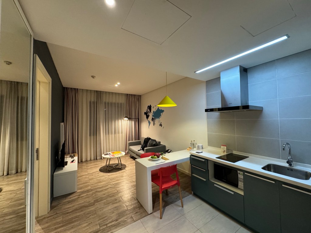 Kita pesan kamar yang paling murah tipe kamar deluxe yang harganya 1.2 juta per malam, sudah termasuk sarapan untuk dua orang. Kalau menurut aku, untuk standar hotel bintang 5 dengan berbagai fasilitas gratis yang ditawarkan itu termasuk murah meriah jika dibandingkan dengan harga di Indonesia. Kita dapat kamar di lantai 14 dengan balkoni yang menghadap ke kolam renang dan bisa terlihat sebagian lautnya. Kamar ukuran 45m2 ini luas juga, bersih, perabotnya terlihat vintage, ada bath tube dan shower dengan tekanan air yang ok. Selain itu, di kamarnya juga tersedia 2 botol air kemasan, robe (baju handuk), yukata (bisa dipakai ke kolam renang/ pantai juga), kopi teh, amenities, smart tv bisa juga nonton youtube, reusable slipper, dan sebagainya.