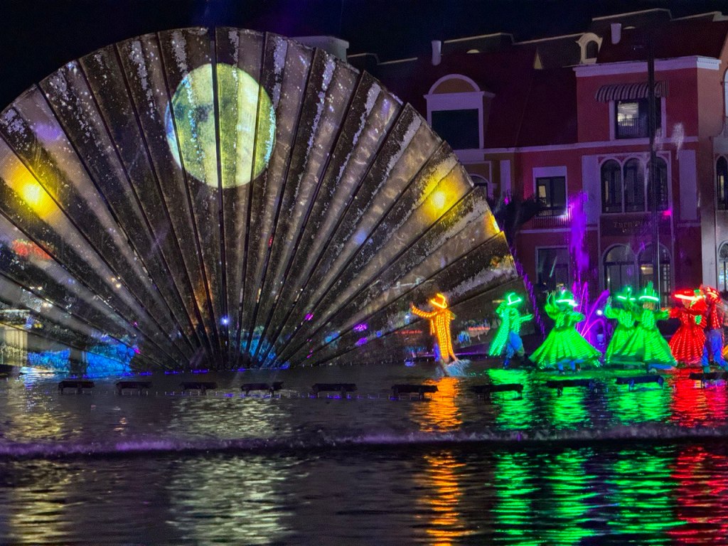 Di malam hari, setelah pulang dari night market yang ada di pusat kota Duong Dong, kita sempat istirahat di hotel sebentar lalu ke Grand World lagi untuk melihat pertunjukan ‘musical fountain light show’ di jam 10 -10.30pm setiap malam selama 30 menit. Keren banget kombinasi cahaya, laser/ lampu sorot, air yang bergoyang mengikuti alunan musik. Ada juga banyak penari dan anggota crew nya yang melakukan pertunjukan diiringi oleh lampu sorot, air mancur, cahaya, hembusan api, dan sebagainya. Walaupun sempat hujan rintik-rintik, namun performance nya tetap jalan dan kita pun tetap tunggu sampai selesai. Selain pertunjukan yang gratis, ada juga yang berbayar yang tidak kalah menarik. Pertunjukannya tentang budaya Vietnam dengan satu pertunjukan yang besar (berbayar) dan 13 mini show nya dari jam 4-6.30pm (gratis). Pertunjukan utamanya yaitu The Quintessence of Vietnam, mulai jam 7-8.30pm, dengan harga tiket masuk berdasarkan kategori tinggi dan umur dimana yang tinggi lebih dari 140cm harganya 300k vnd (IDR 192k) dan yang kurang dari 140cm ataupun yang diatas 60 tahun harga tiketnya 230k vnd per orang (IDR 147k).