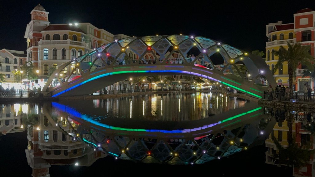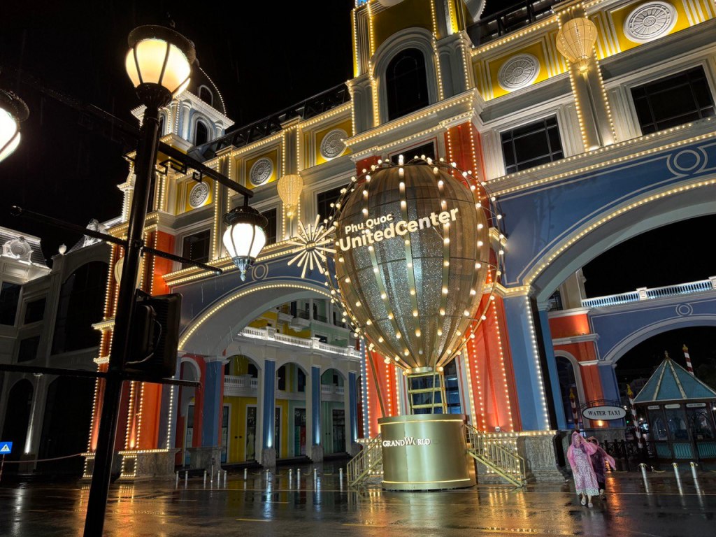 Tempat ini adalah kompleks hiburan dan tempat perbelanjaan yang terkenal di pulau Phu Quoc (tiket masuk kawasan gratis). Destinasi hiburan ini diresmikan pada akhir tahun 2020 dan telah menjadi salah satu tujuan wisata populer di pulau ini. Grand World memiliki arsitektur yang indah dan megah, terinspirasi dari kota kota di Eropa. Disini terdapat gedung berwarna-warni, danau buatan (namanya Sungai Venisia atau Danau Cinta), gondola seperti berada di Venice (Italia), taman hijau (Urban Park), museum Teddy Bear, dan sebagainya. Kalau yang tertarik naik gondola, harganya sekitar 150k-200k vnd/orang (Rp 131k) atau sewa gondola 800k vnd (525k Rupiah).