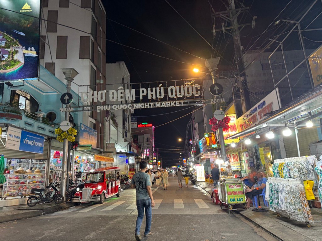 Makan malamnya, kita pergi makan seafood di pusat kota dari pulau ini. Hotel juga menyediakan shuttle bus yang mengantarkan kita ke Duong Dong Night Market jam 5pm dan dijemput kembali jam 9pm. Awalnya saat kita booking satu hari sebelumnya di resepsionis, slot nya sudah penuh. Namun saat hari H, kita nunggu saja di lobby sebelum jam 5pm dan ternyata ada beberapa orang yang tidak muncul. Sebagai gantinya, kita bisa ikutan. Setelah sekitar 30 menit di perjalanan, kita diturunkan di dekat pasar malam Duong Dong dan akan kembali dijemput jam 9 malam.