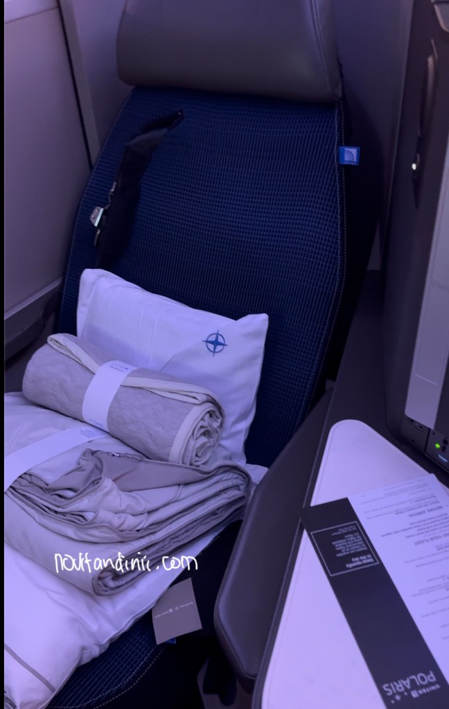 Sambil duduk manis menunggu pesawat berangkat, kita obrak abrik apa saja yang diberikan atau kita nikmati untuk kenyamanan yang maksimal selama terbang. Di United Polaris, kita dapat bantal besar untuk tidur, bantal kecil, matras tambahan tersedia untuk penerbangan malam dan selimut premium yang disponsori oleh Saks Fifth Avenue, department store mewah asal USA. Kita juga mendapatkan tas selempang kecil yang lagi tren yang isinya Amenity kit dari Therabody (berisi lip balm, pelembab, krim tangan, serum mata, dan tisu basah). Selain itu terdapat juga ear plugs, tisue, bolpen, penutup mata, perlengkapan sikat gigi dan kaus kaki.