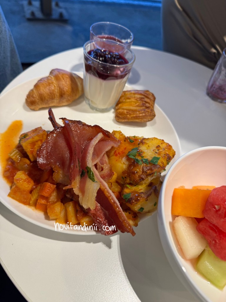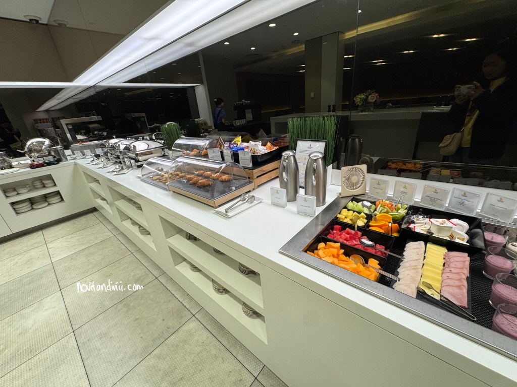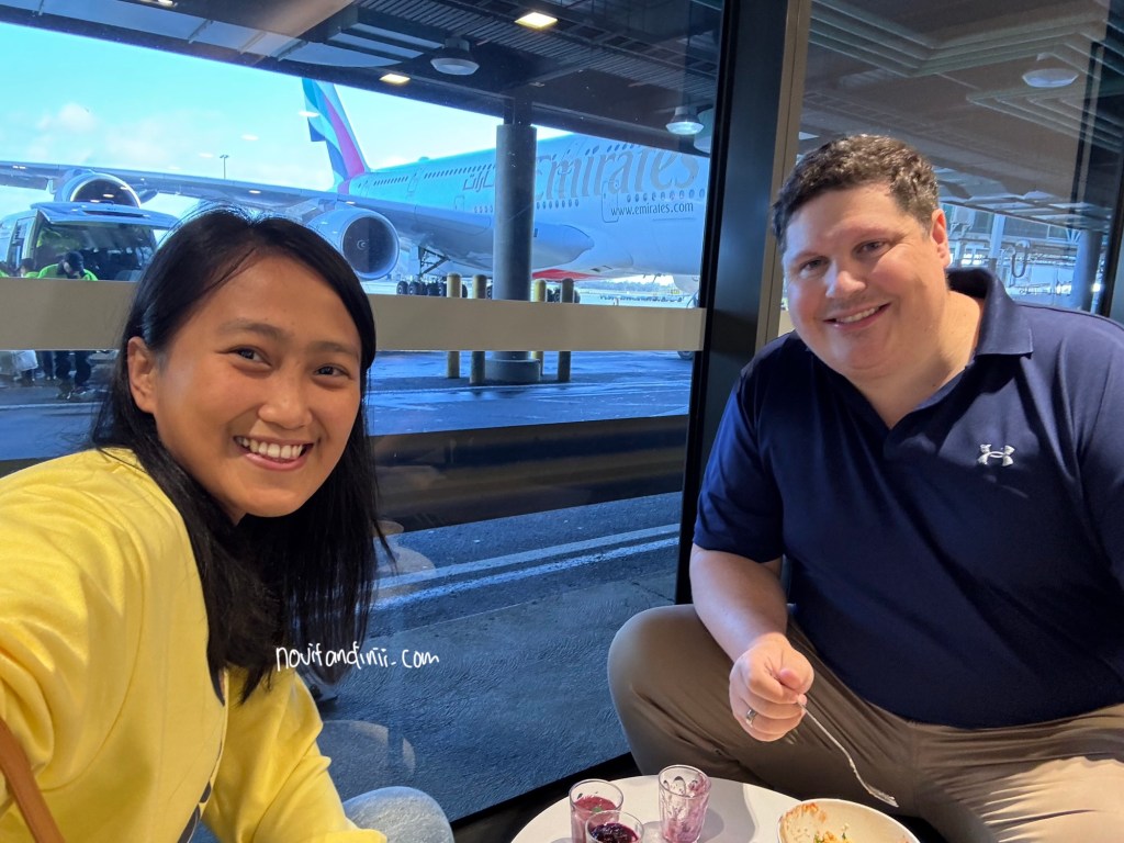 Sebelumnya United Polaris (sebutan untuk kelas bisnisnya maskapai United Airlines) memiliki lounge di bandara Melbourne, namun sayangnya sudah ditutup. Sebagai gantinya, kita bisa akses ‘Air New Zealand Lounge’. lounge nya berlokasi di lantai dasar dengan pemandangan tempat parkir pesawat dan ‘runway’. Tempatnya juga terbilang cukup luas dan lega dengan berbagai pilihan tempat duduk (sofa, stool, high chair, dan sebagainya) yang bisa menampung sekitar 249 penumpang. Tersedia area kerja (ada printer dan komputer), kamar mandi, gratis wifi, kids corner, tempat titip bagasi, dan sebagainya. Setelah menemukan tempat duduk untuk berdua dengan view pesawat Emirates, kita langsung menyerbu tempat makanannya karena perut ini sudah merontah-rontah minta makan.