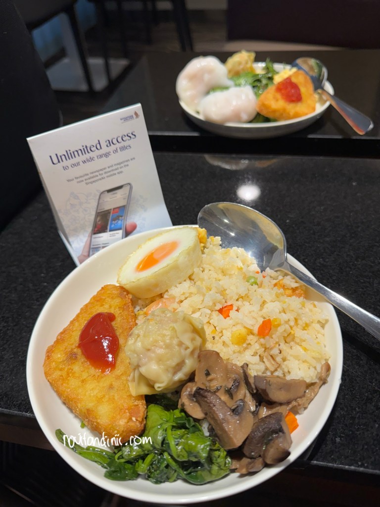 Makanan yang tersedia disini adalah makanan barat/ western yah. Seperti biasa kita makan bacon, telur orek, menu vegetarian ‘tofu and vegetable casserole’, yoghurt, smoothies, potongan buah segar dan sebagainya. Kalian juga bisa pesan kopi dari baristanya lewat ipad tersedia didepan meja konter nya. Jadi disini, kita sendiri yang memasukkan pesanan kopi kita. Setelah perut ini sudah mulai terisi, suami memberikan ide untuk pindah lounge kalau saja aku ini pengen makan makanan Asia. Suami ini memang paling tau eh, menyenangkan istrinya. Tidak menunggu lama, kita langsung angkat kaki dari lounge ini menuju Silver Kris Flyer lounge kelas bisnisnya Singapore Airlines. Lounge nya saat itu sibuk sekali, kita dapat tempat duduk paling belakang dan jauh lagi dari makanan. Disini diriku lupa diri, makan lagi nasi goreng, dumpling, siomay, pokoknya segala macam makanan memenuhi piring. Anw, lounge SQ di Melbourne ini tempatnya tidak terlalu besar dan kebanyakan jarak antar kursi nya juga agak mepet yah. Kalau ramai sekali, lounge ini tidak terlalu nyaman. Bagi yang penasaran, kenapa kita sampai nyasar di lounge SQ ini. Itu karena, suami memiliki status ‘platinum’ di Virgin Australia yang merupakan anggota ‘the Star Alliance’ bersama-sama dengan Singapore Airlines, United Airlines, dan Air New Zealand. So, kalau kalian punya status ini dan naik pesawat kelas Bisnis di salah satu anggota ‘the Star Alliance’, kalian juga bisa masuk ke lounge kelas bisnis maskapai anggotanya.