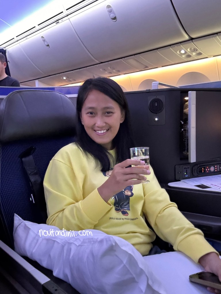 Proses boarding nya juga mulus, kita mengantri sesuai dengan ‘boarding group’ yang ada di ‘boarding pass’ yang mulai dari 1-5. Jangan lupa siapkan passport dan boarding pass kalian untuk di scan sebelum masuk ke pesawat. Kita booking tempat duduk ditengah supaya bisa bersebelahan dengan si suami dan yang paling penting dan terpenting lokasinya harus dekat dengan wc. Karena memang formasi tempat duduk nya itu 1-2-1 dengan semua kursi menghadap kedepan. Benar sekali, karena kebiasaan yang beser seperti ini, dekat wc itu adalah keharusan. Jangan lupa minum banyak di pesawat yah teman-teman supaya kita selalu terdehidrasi apalagi dalam perjalanan yang panjang dan memakai pelembab, karena udara yang kering diatas udara.