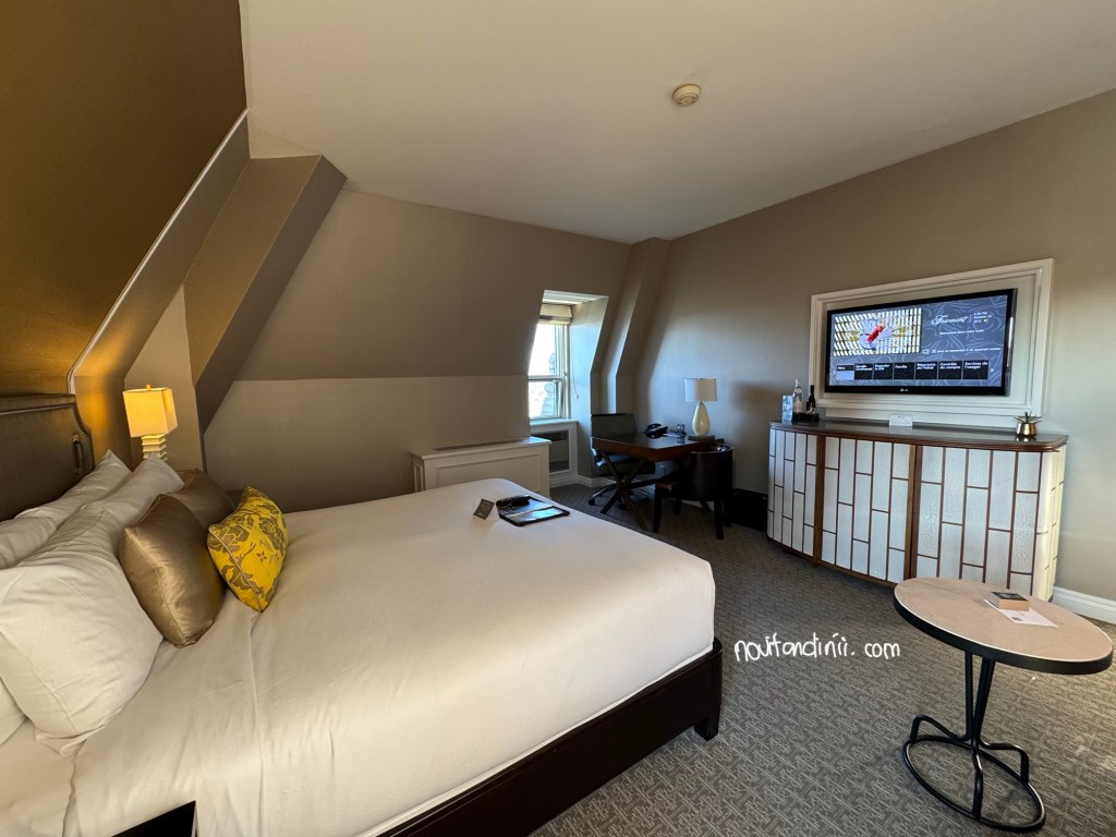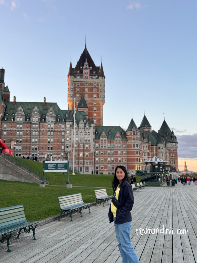 Perjalanan kali ini, kita menginap di hotel yang sekaligus menjadi landmark kota Quebec city, yaitu Fairmont Le Chateau Frontenac. Hotel yang resmi dibuka pada tahun 1893 ini, memiliki desain arsitektur yang megah dan klasik, yang mencerminkan sejarah kota ini. Baru kali ini bisa merasakan tinggal bermalam di bangunan yang merupakan simbol warisan kota dan sering dijadikan latar belakang foto serta karya seni. Seperti dibawa kembali melewati lorong waktu, sungguh pengalaman yang istimewa.