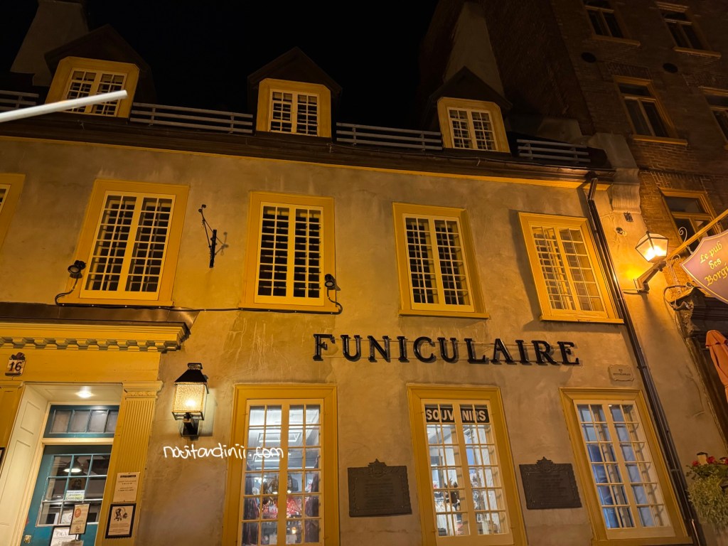 Terdapat kereta gantung miring (funicular), tangga dan jalan yang menanjak/menurun, yang menghubungkan kedua area ini. Karena penasaran, kita sempat mencoba naik kembali ke bagian atas kota dengan menggunakan funicular. Seru juga, seperti naik lift klasik dengan pemandangan indah kota tua dan sungai st Lawrance. Harganya CAD$ 5/ sekali naik dan mereka hanya menerima pembayaran tunai. Cara unik untuk menikmati pemandangan kota tua Quebec.