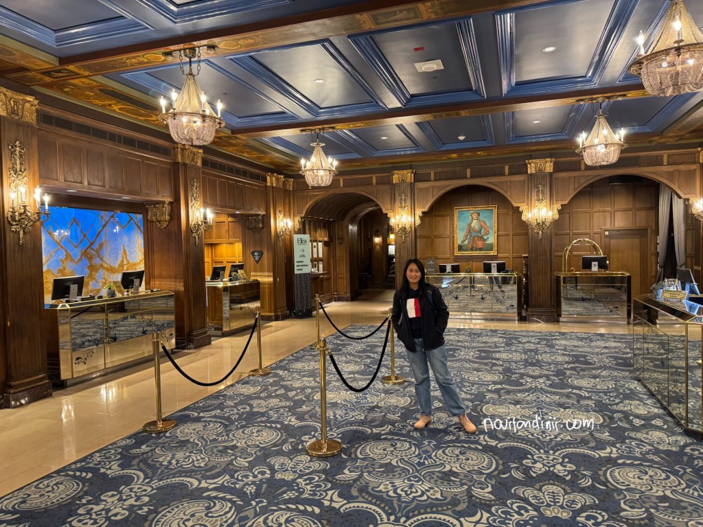 Hotel nya ramai banget sore itu, lobby hotel penuh dengan orang yang terlihat kebanyakan pengunjung daripada tamu hotel. Karena memang hotel ini merupakan salah satu tempat turis dan menawarkan tur berkeliling hotel dengan guide dari hotel. Di sekitaran hotel ini juga terlihat banyak bus pariwisata yang besar yang berhenti, menurunkan atau menjemput para wisatawan.