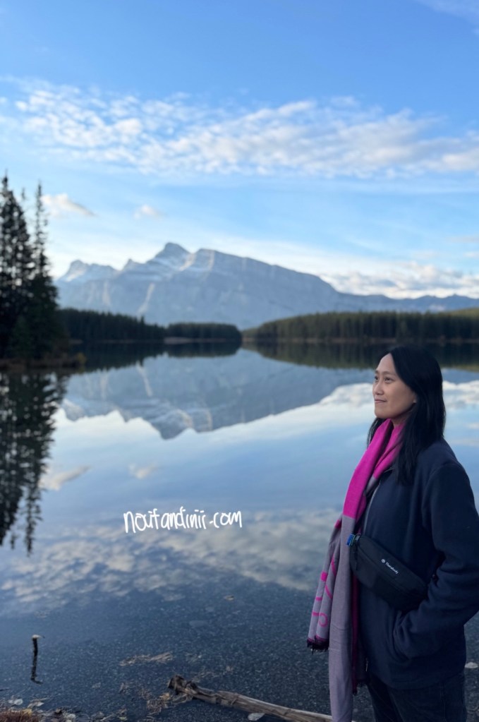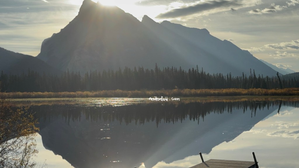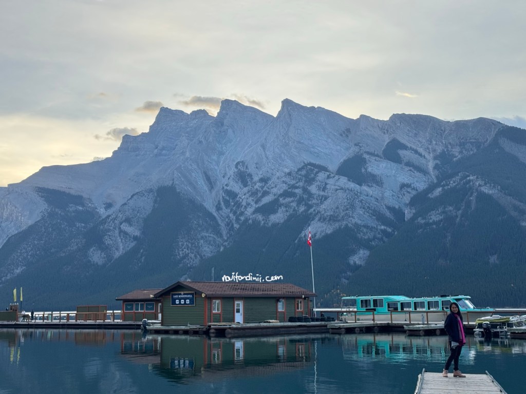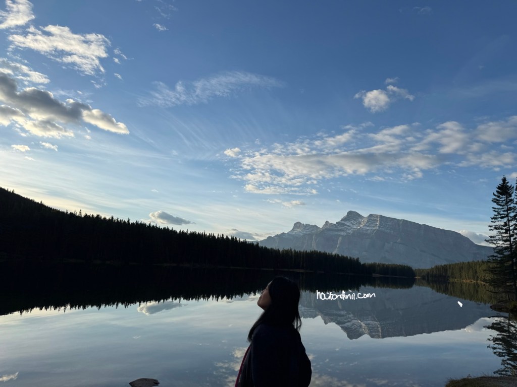 Pagi-pagi benar, kita sudah bersiap untuk ke tempat pertama yang kita ingin kunjungi di Taman Nasional Banff ini. Tidak lupa kita juga bawa pakaian yang ingin kita cuci juga di laundry di Banff town, supaya sekalian jalan yah. Karena sudah mau masuk musim dingin, jam 7 pagi disini tuh masih gelap, jadinya kita berangkat jam 8 pagi saat matahari mulai muncul. Setelah 25 menit berkendara kita sampai juga di danau Mennewanka. Bagi kalian pencinta danau, aku akan banyak memperlihatkan danau selama di Kanada. Karena Kanada merupakan negara dengan jumlah danau terbanyak di dunia, yang sebagian besar terbentuk akibat aktivitas glasial selama zaman es yang dimana menciptakan cekungan besar yang kemudian terisi air. Kira-kira Kanada memiliki lebih dari 879ribu danau dengan lebih dari 60% total danau dunia berada di negara ini. Ada berbagai macam danau sudah ada disini, mulai dari danau air terbesar di dunia, danau terdalam di Amerika utara, danau yang bisa berubah warna, sampai danau yang membeku selama berbulan-bulan. Kanada ini seperti negeri danau yang indah dan mempesona.