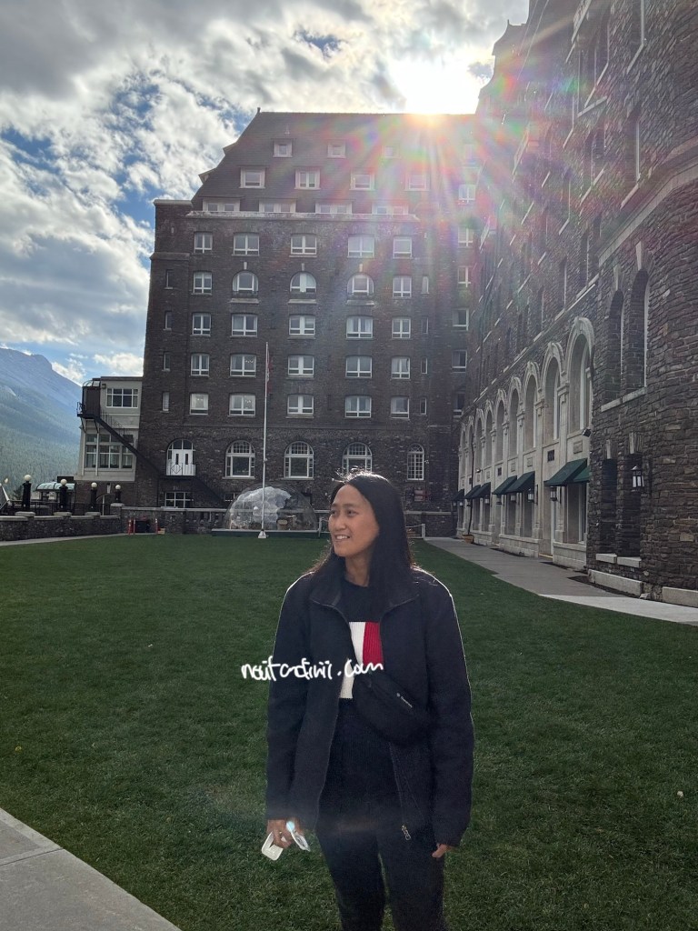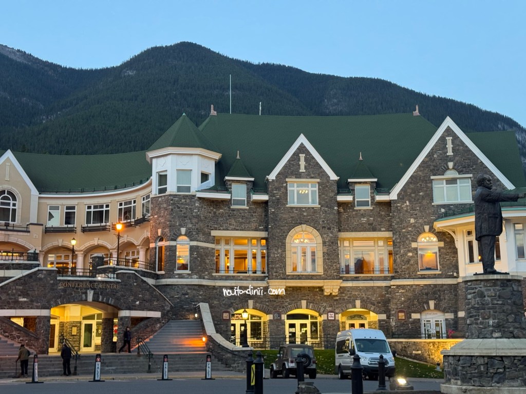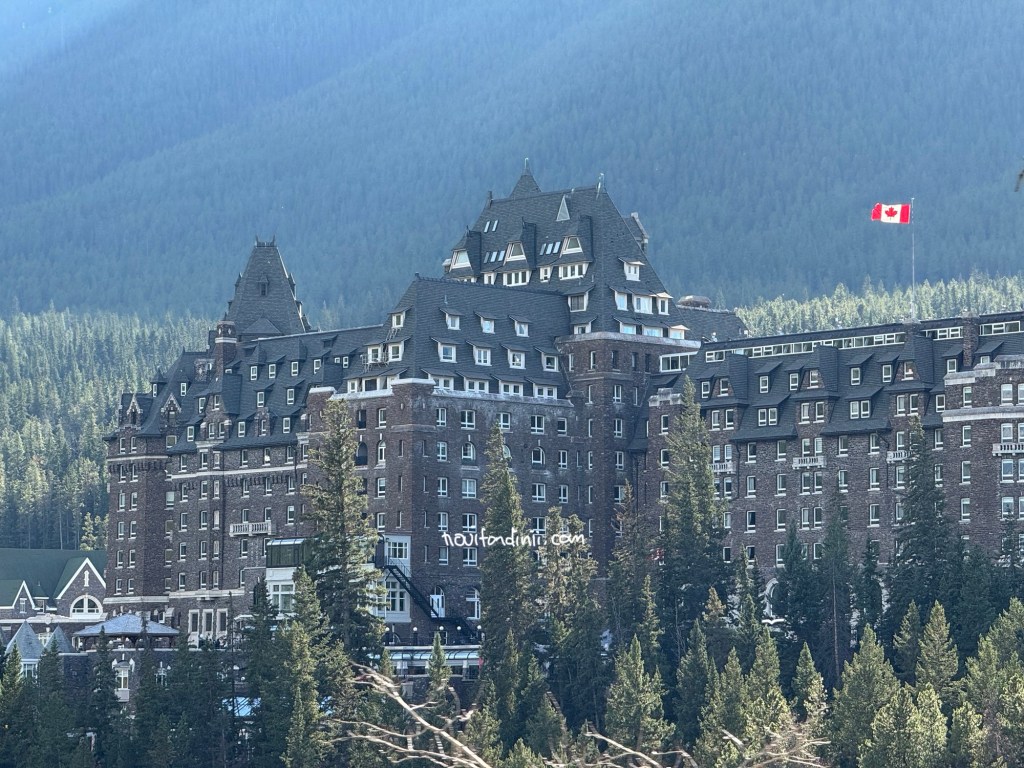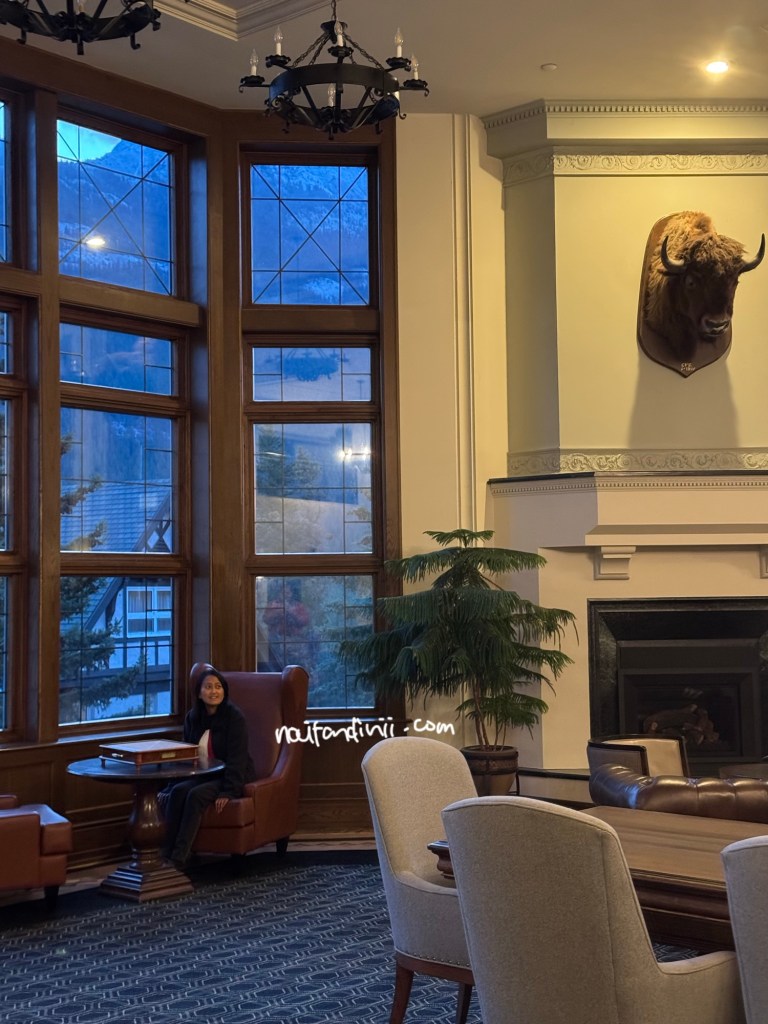 Setelah perut kenyang, kita lanjut berkendara sekitar kurang dari 7 menit ke tempat penginapan. Selama semalam di Banff, kita menginap di salah satu hotel bersejarah di taman nasional ini yaitu Fairmont Banff Springs. Hotel ini dikenal sebagai ‘Castle in the Rockies’, karena arsitekturnya menyerupai kastil Eropa bergaya Skotlandia dengan pemandangan dikelilingi Pegunungan Rocky yang sangat indah.