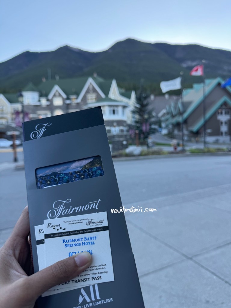 Pengalaman check-in kita di resepsionis berjalan mulus. Resepsionisnya juga sangat ramah dan menjelaskan segala macam fasilitas dan informasi yang perlu kita ketahui. Kalau kalian yang bawa mobil, parkir disini gratis kalau parkir sendiri atau tidak pakai valet. Sebagai tamu hotel, kita juga dapat tiket bus gratis selama tanggal kita menginap. Kita bisa naik transportasi umum tanpa batas dengan tiket ini dan hanya berlaku di kota Banff ini saja. Area hotel ini cukup besar, dimana terdapat 3 area utama untuk menginap dengan gaya dan pengalaman yang berbeda yaitu bangunan utama, gatehouse wing, dan fairmont gold floor (lantai eksklusif). Kita booking kamar yang paling murah yaitu yang berada di Gatehouse Wing. Ini merupakan bangunan tambahan yang lebih moderen daripada bangunan utama, ukuran kamarnya lebih gede dan areanya lebih tenang. Sedangkan yang bangunan utama kamar-kamarnya tuh lebih ke desain klasik seperti berada di dalam kastil Eropa dengan akses yang lebih mudah ke fasilitas hotel seperti kolam renang, resto, spa dan sebagainya. Kalau yang Fairmont Gold Floor ini tuh super mahal yang berada di lantai eksklusif dimana kamarnya sudah termasuk akses ke lounge khusus, area check-in khusus dan akses ke fasilitas yang lebih premium.