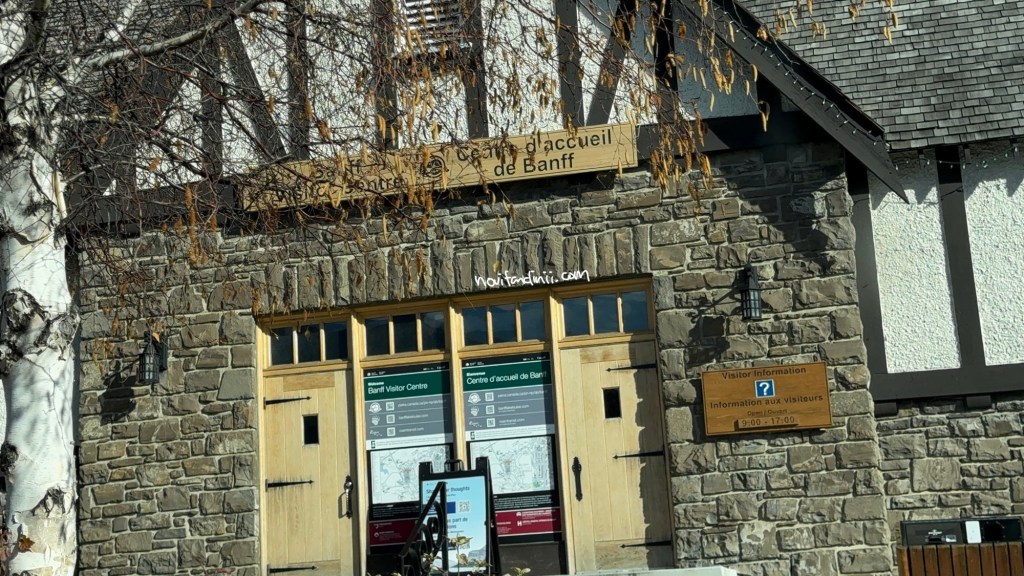 Sebenarnya kita bisa beli tiket masuk taman nasional ini di kota kecil Canmore yang berada di sebelum gerbang masuk ke Taman Nasional. Begitu juga degan pembelian tiket di gerbang masuk taman nasionalnya. Karena saat itu dan biasanya juga antriannya panjang dan ramai, suami yang paling tidak suka ngantri terlalu lama. Kita sebenarnya sudah kelewatan, dan baru menyadari setelah sudah lewat kalau yang antrian panjang tadi itu untuk beli tiket. Karena memang tidak ada palang atau gerbang yang menutup jalur masuknya gitu, jadi kita kebablasan dah. Untung saja, ternyata kita bisa beli tiket nya di Banff information centre yang saat itu buka dari jam 9am-5pm. Setelah membeli tiket masuk harian Taman Nasional ini, tiket yang berupa kertas ini kita perlu letakan di dasbor mobil supaya kalau ada pemeriksaan petugas bisa lihat kalau kita punya tiket masuk. Kalau tidak, kita bisa dapat denda yang tidak sedikit.