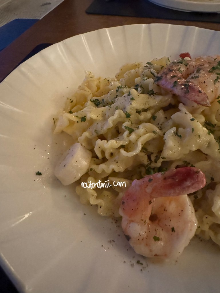 Untuk makan malam, kita sempat cobain makan di salah satu restoran mereka. Tamu hotel perlu reservasi terlebih dahulu untuk bisa makan di restoran nya. Sebenarnya aku sudah sisihkan budget untuk canoe di Lake Louise atau Lake Moraine. Namun karena kita dapat canoe gratis dari hotelnya, jadi kita pakai budget canoe untuk makan malam romantis dalam rangka ‘wedding anniversary’ ke 4 tahun kita mengarungi bahtera rumah tangga. Kita pesan Prawn & Scallop pasta, Pork Chop Tomahawk dan pizza. Makanannya enak juga dan pizza nya sih yang paling enak. Wangi banget aroma panggangnya dan rempah-rempah khas dari oregano serta bawang putih saat sampai di meja. Tekstur pizza nya ada kombinasi renyah / crusty diluar dan lembut di dalam. Pastanya lumayan namun kalau aku lebih suka lebih flavourful dan lebih banyakin butter sauce nya dong.