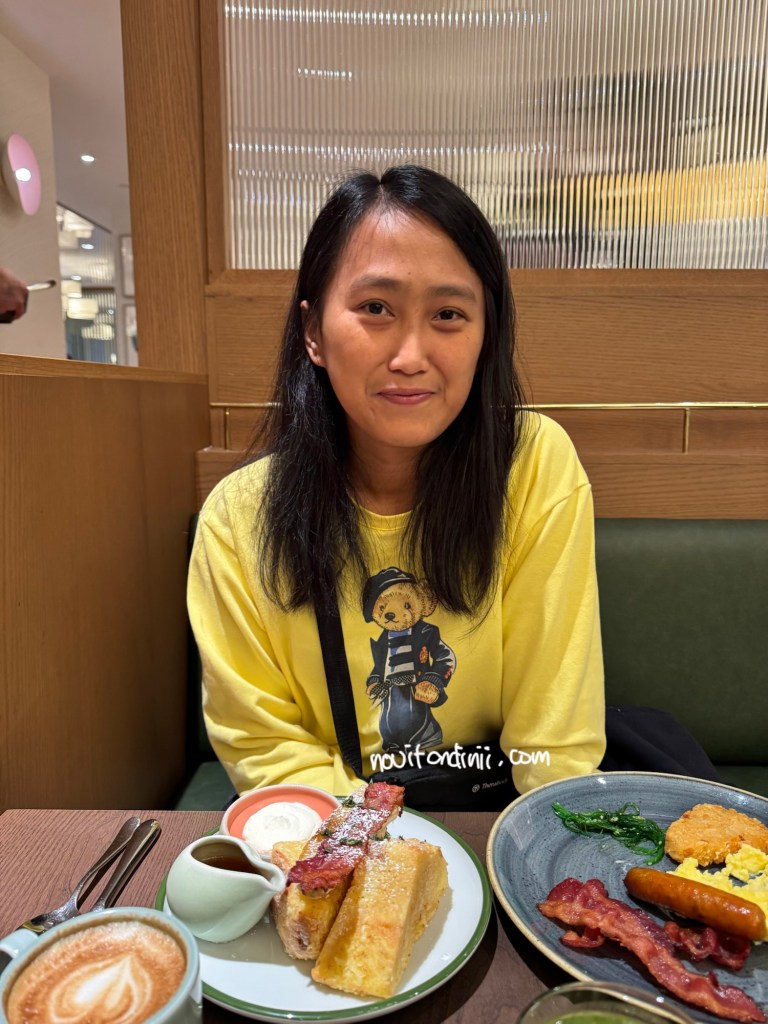 Keesokan harinya, kita dapat makan pagi dari hotel. Ini sih makan pagi terbaik dalam tur 2 minggu Amerika Kanada kita kali ini. Kita bisa pesan makan dari menu ‘ala carte’ dan tersedia pula ‘buffet’ nya. Tentunya, kita tidak melewatkan mencoba makanan lokal ‘French toast’ ala Kanada dengan jenis roti Brioche yang super lembut dan renyah diluar, caramelised banana, dan maple bacon yang garing/ crispy. Kalau suami pesanannya tidak jauh-jauh dari perdagingan, yaitu ‘Pork Belly Bowl with maple glazed pork belly, crispy potato, poached egg, and hollandaise sauce’. Kalau kalian tidak dapat sarapan dengan harga kamar, kalian bisa beli ditempat, harganya sekitar CAD$36/orang (400k Rupiah).